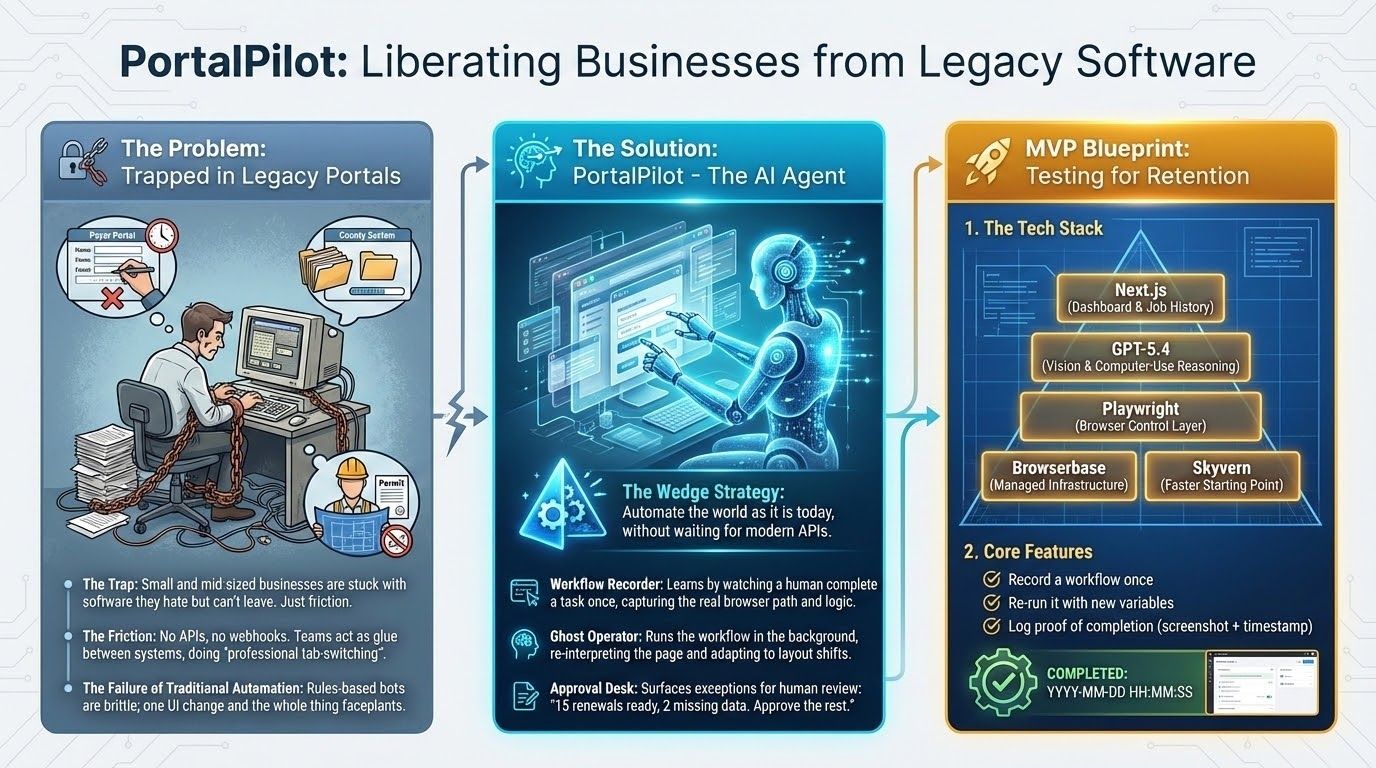 The systems that actually run real businesses are still stuck in another century. Medical billing portals. Permit systems. Warehouse dashboards. Ancient back-office tools with bad UX and zero APIs.